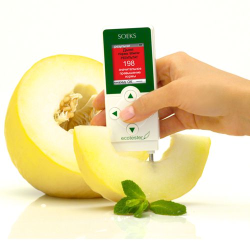 В основе механизма измерения нитратов лежит разработанный и запатентованный компанией СОЭКС метод ионометрии биопродукта. Он позволяет быстро (в течение 3 секунд) оценить содержание нитратов в свежих овощах, фруктах и сыром мясе.