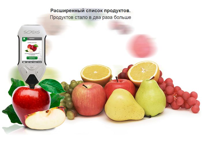Эковизор позволяет легко и быстро определять качество продуктов питания. Достаточно выбрать продукт из расширенного списка. Все нормы по содержанию нитратов уже внесены в память Эковизора Соэкс. Не нужно запоминать сложные формулы, Эковизор сам выдаст предупреждение в цифровом и графическом виде, если норма превышена. Например, для опасных продуктов – «Значительное превышение нормы», а для безопасных – «Содержание нитратов в норме».