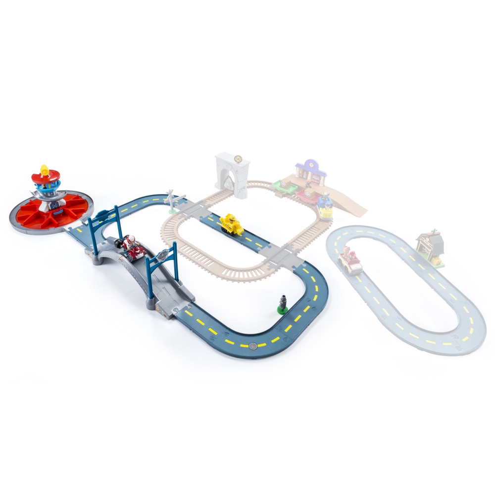 Не только поклонники мультфильма Щенячий патруль, но и просто любители поиграть с машинками и треком в целом, оценят данный набор от Spin Master. В нем есть все необходимое для быстрого старта и начала игры, поэтому правильно произведя монтаж трека, можно сразу же преступать к веселому проведению своего досуга. Он состоит из офиса спасателей, элементов, предназначенных для сборки трека, моста, двух фигурок на машинах, 2 мини фигурок, семафора, а также дополнительных аксессуаров.