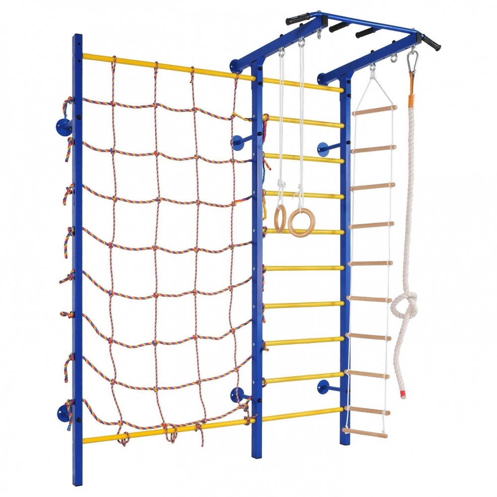 Спортивный комплекс Sport-Fora Семейный SS201 подойдет как детям, так и взрослым, обеспечив идеальные условия для спортивного досуга. Производитель огромное внимание уделил прочности и устойчивости конструкции – благодаря использованию качественных металлических сплавов стенка выдерживает нагрузки до 300 кг, а грузоподъемность турника достигает 230 кг. В процессе установки достигается надежная фиксация перекладин с помощью винтов. Также используется защитное полимерно-порошковое покрытие конструкции, обладающие антикоррозийными свойствами и противостоящее возникновению сколов или царапин. На перекладинах есть противоскользящие накладки из ПВХ, поэтому в процессе занятий спортом обеспечивается высокий уровень безопасности. Помимо шведской стенки и турника, в спортивном комплексе предусмотрены сеть для лазанья, кольца, веревочная лестница и канат.