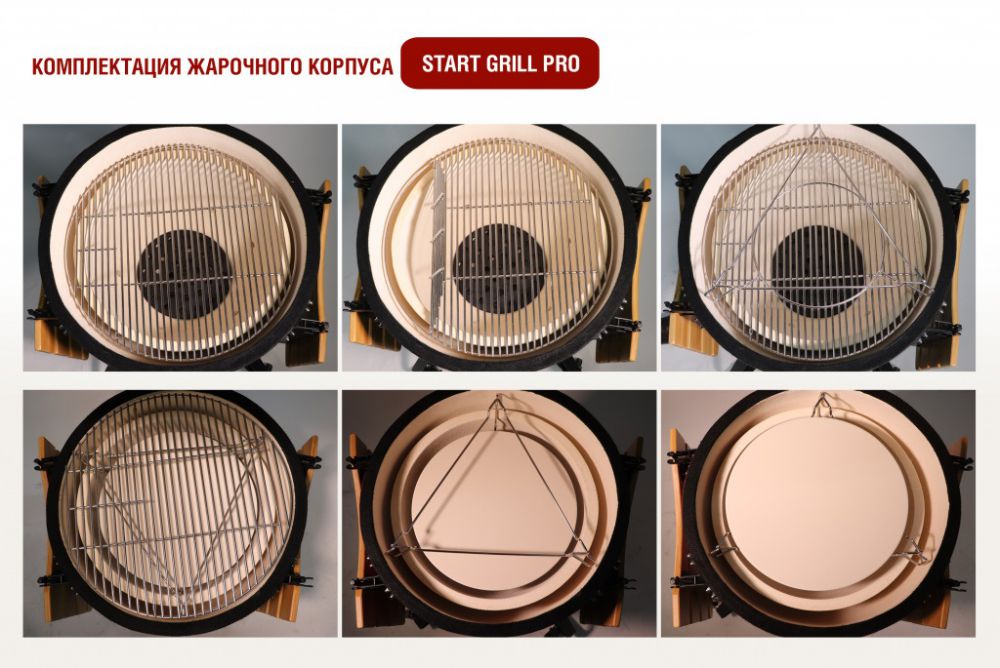 Керамический гриль Start Grill SG 18 PRO одновременно сочетает в себе функции гриля, барбекю, мангала, коптильни, духовки, печи для пиццы и тандыра. Гриль выполнен из экологически чистой толстостенной керамики. Наличие удобных боковых столиков позволяют держать всё необходимое под рукой, акрючки-держатели помогают кухонной утвари находиться на виду.