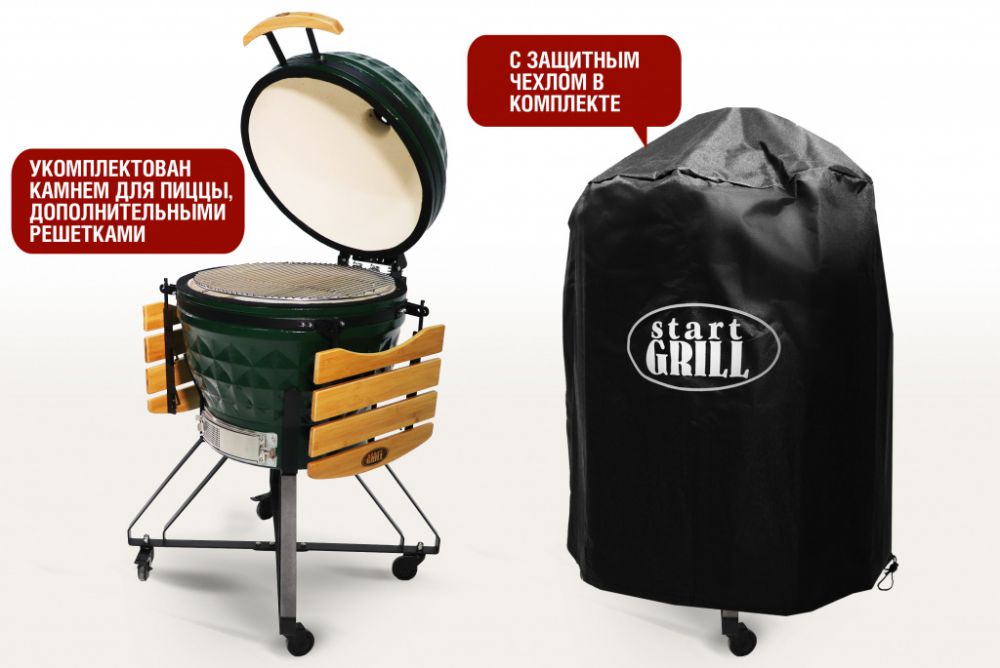 Данная модель относится к премиальной линейке семейства керамических грилей Start Grill с уникальной внешней текстурой "Бриллиант". При производстве гриля Start Grill используются самые прочные и долговечные материалы, которые не боятся ни коррозии, ни перепадов температур и позволяют сохранить презентабельный вид изделия на многие годы.
