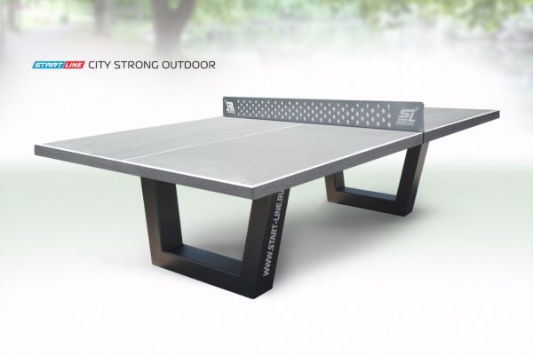Теннисный стол от компании START LINE «City Strong Outdoor» - бетонный антивандальный теннисный стол, предназначен для городских парков, открытых спортивных площадок и других общедоступных зон отдыха. Стол устойчив к физическим воздействиям различного рода, например, ударам, в него заложена возможность длительной интенсивной эксплуатации. Этот стол с применением армированного бетона в конструкции столешницы и основания способен противостоять воздействию высокой влажности и резким колебаниям температуры. Интегрированная перфорированная сетка устойчива к актам вандализма.