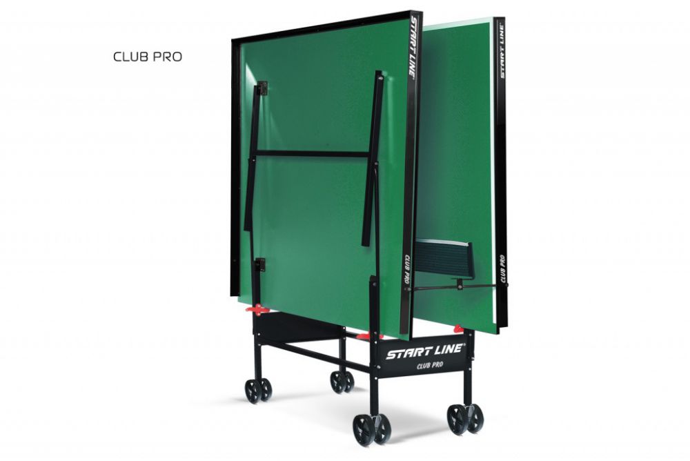 Теннисный стол Start Line Club-Pro Green для использования в спортивных школах и клубах с встроенной сеткой и самоблокирующимся механизмом трансформации. Прорезиненные колеса гарантируют плавность хода и маневренность.