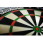 Мишень изготовлена из кенийского сизалевого волокна. Границы секторов выполнены в виде острого ножа, кольцо нумерации вращается. Дротики имеют латунное покрытие высокого качества.