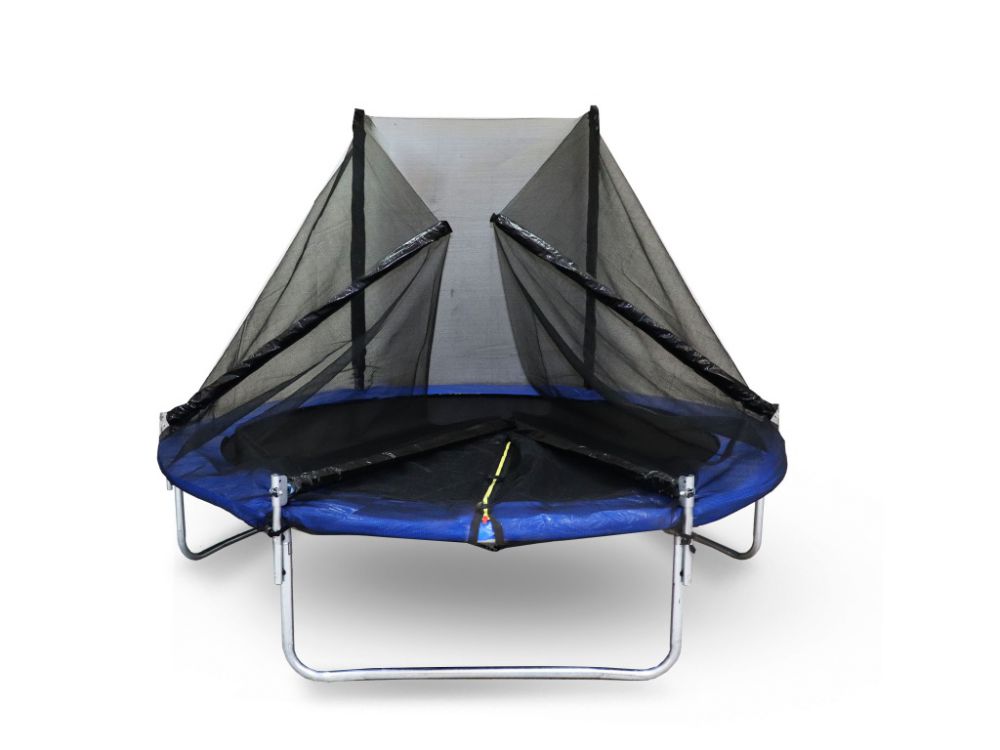 Внешняя защитная сетка (в комплекте) обеспечит безопасность от случайного падения. Сетка изготовлена из высокопрочного нейлона, надежно крепится к стойкам батута. Для защиты вход/выход через сетку выполнен на молнии с фиксирующими защелками с внешней стороны.