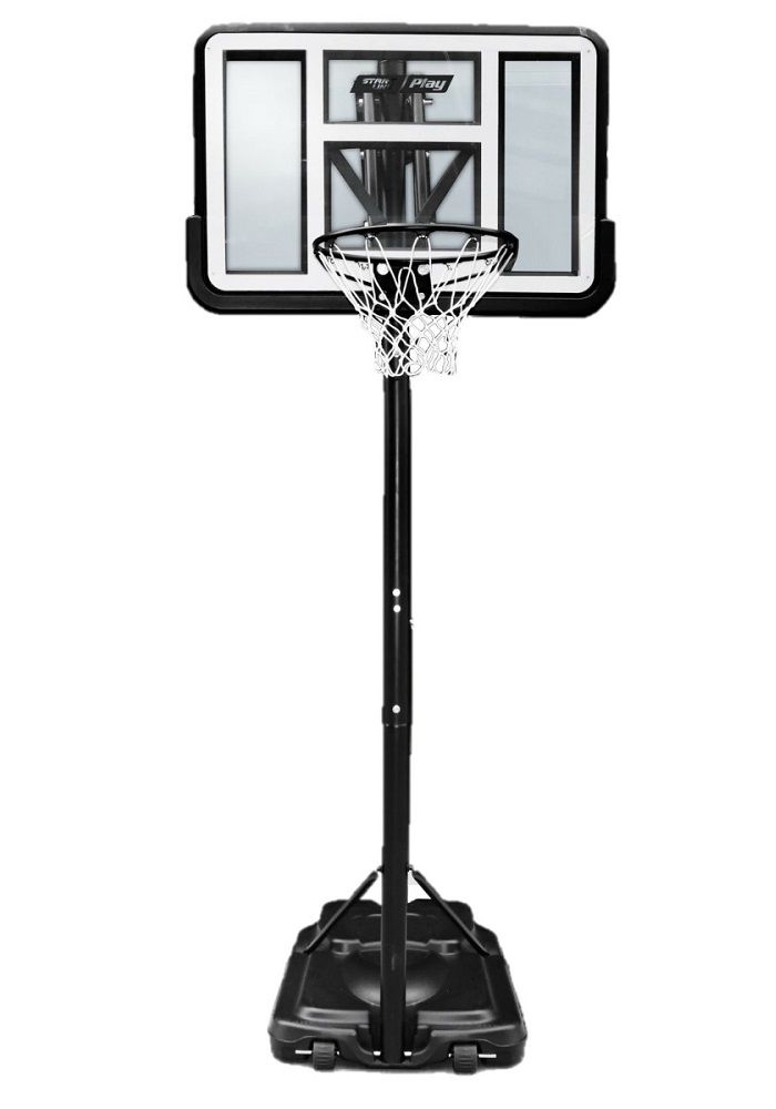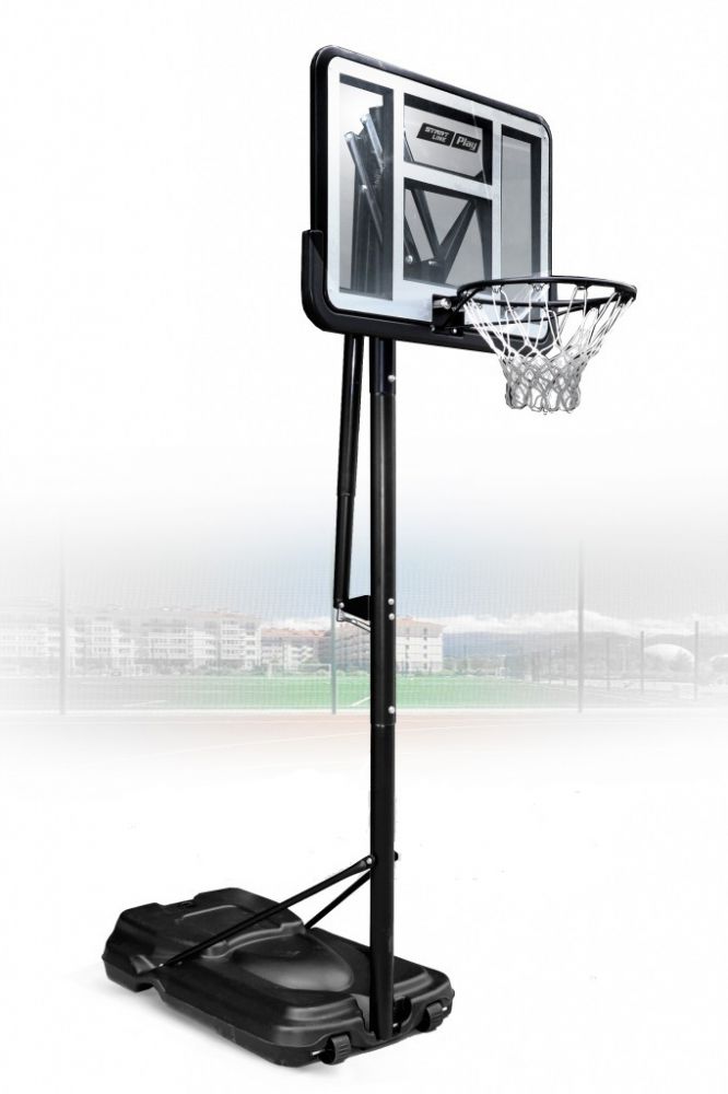 Мобильная баскетбольная стойка Start Line Professional SLP-021 включает в себя полую базу, которая должна быть заполнена для утяжеления (рекомендуется песком), регулируемый по высоте щит и баскетбольную корзину.