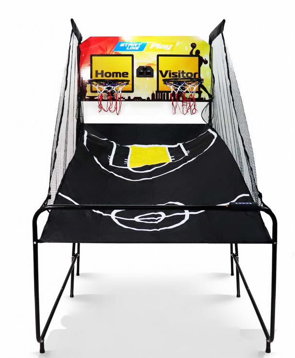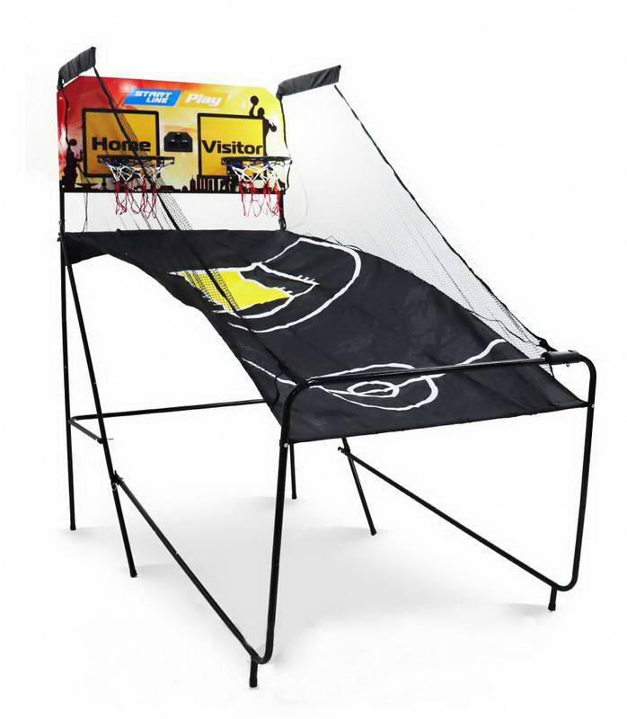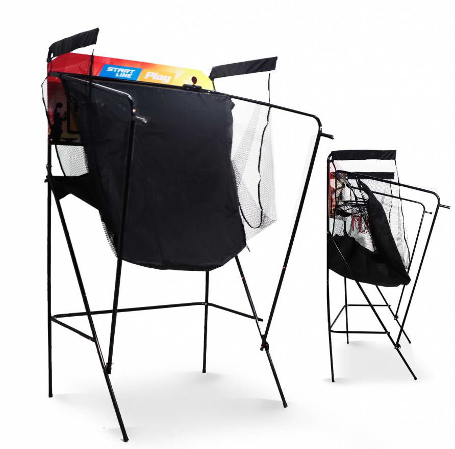 Тренажер очень удобен при выполнении бросков в кольцо с различных направлений, предполагает соревнования в паре, автоматический подсчет очков. Конструкция компактна, в сложенном виде занимает мало места. В комплекте поставляется 4 мяча.