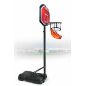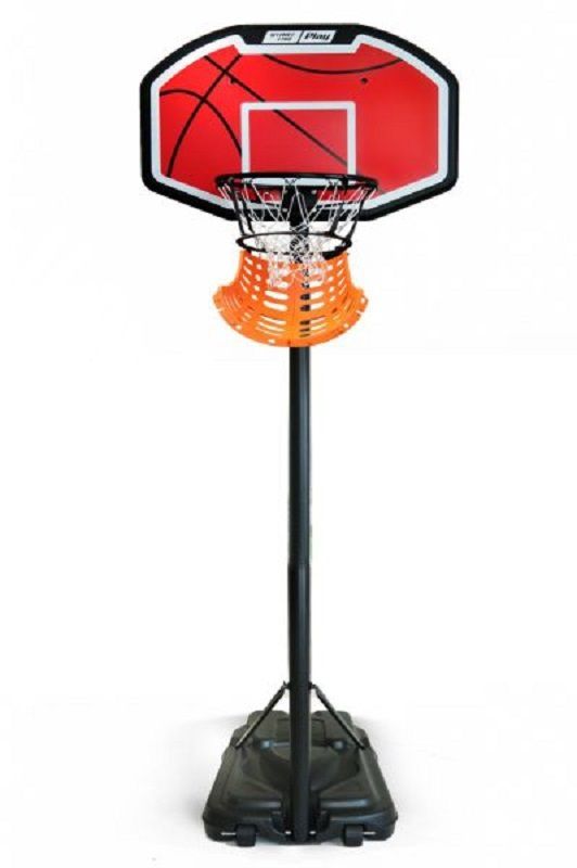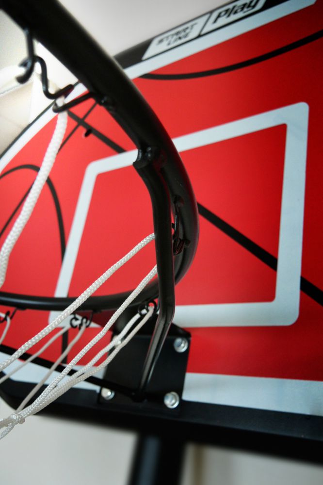 Щит, регулируемый по высоте, изготовлен из высокопрочного усиленного пластика. Полая база заполняется для утяжеления (рекомендуется песком). Высота стойки регулируется в зависимости от роста игроков. Стойка легко перемещается благодаря встроенным в основание колесам.