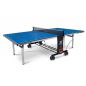 Регулируемая высота боковых опор дает возможность установить стол на неровную поверхность. Благодаря сдвоенным обрезиненным маневровым колесам теннисный стол легко перемещать. Конструкция предусматривает в боковых накладках наличие пенала для хранения мячей и ракеток.