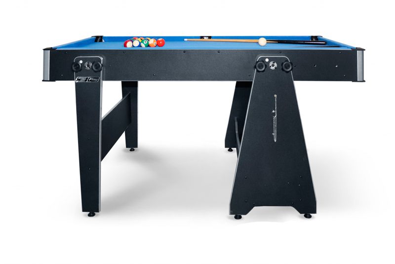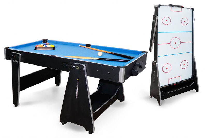 Стол трансформер Universal совмещает в себе 2 игры аэрохоккей и бильярд. Смена игры происходит путем переворачивания игровой поверхности. Прочный устойчивый корпус изготовлен из МДФ, специально обработанного и покрытого пленкой ПВХ. Таким образом поверхность защищена от влаги и мелких механических повреждений. Все необходимые для игр аксессуары входят в комплект.