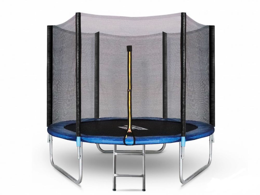 Спортивный батут 8 футов (244 см) с внешней сеткой и лестницей для установки в домах, на дачах, во дворах, а также в парках и на пляжах.