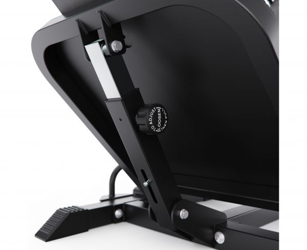 Для комфортных и безопасных тренировок тренажёр оснащён удобной спинкой, которая надёжно поддерживает спину и помогает сохранять правильное положение тела во время выполнения упражнений. Рифлёная платформа для ног обеспечивает устойчивый упор и предотвращает соскальзывание стоп при жиме.