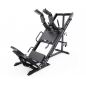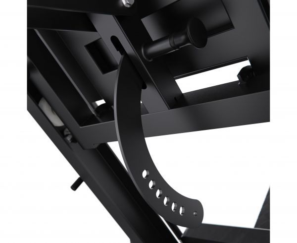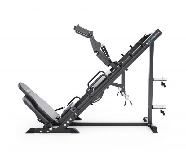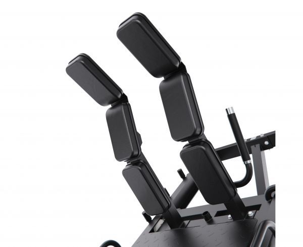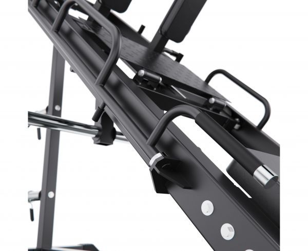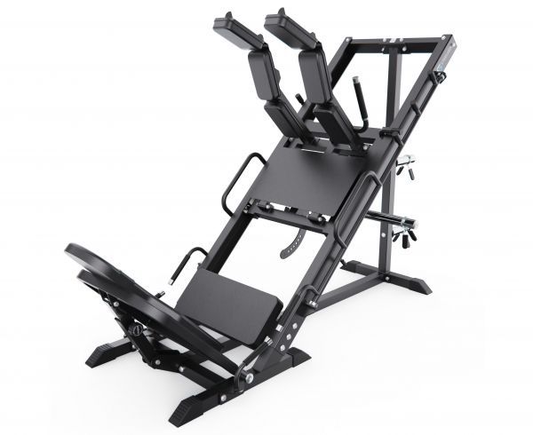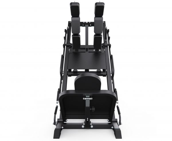 Конструкция позволяет регулировать положение под рост пользователя, а также переставлять спинку, что даёт возможность выполнять различные упражнения в режимах жима ногами и гакк-приседаний. Тренажер имеет прочную раму с профилем 75 х 75 х 3 мм, что гарантирует надежность и долговечность конструкции.