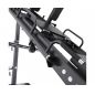 Конструкция тренажера рассчитана на максимальную нагрузку до 250 кг, что позволяет использовать его как новичкам, так и опытным спортсменам. Тренажер оснащён 4 посадочными местами с диаметром посадочного отверстия 50 мм, что совместимо с большинством стандартных весовых дисков.