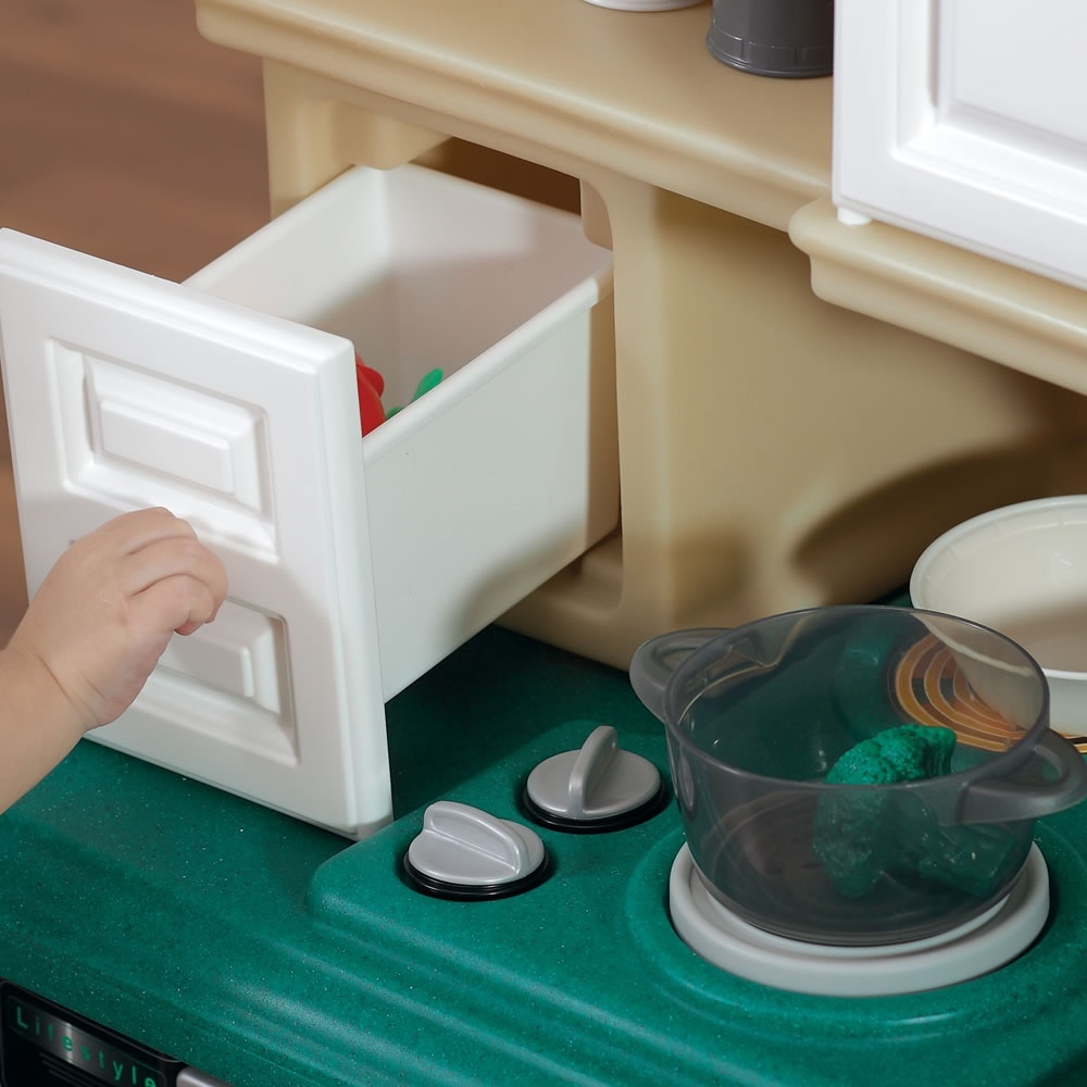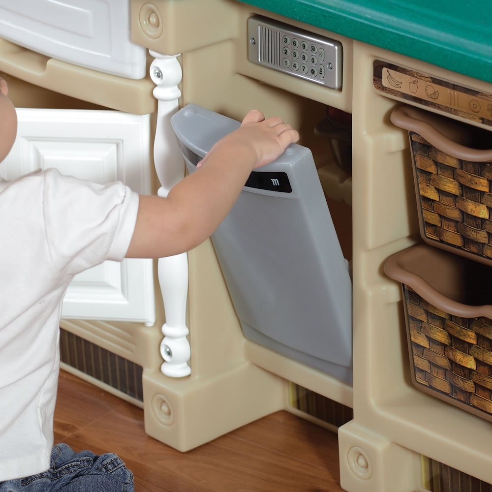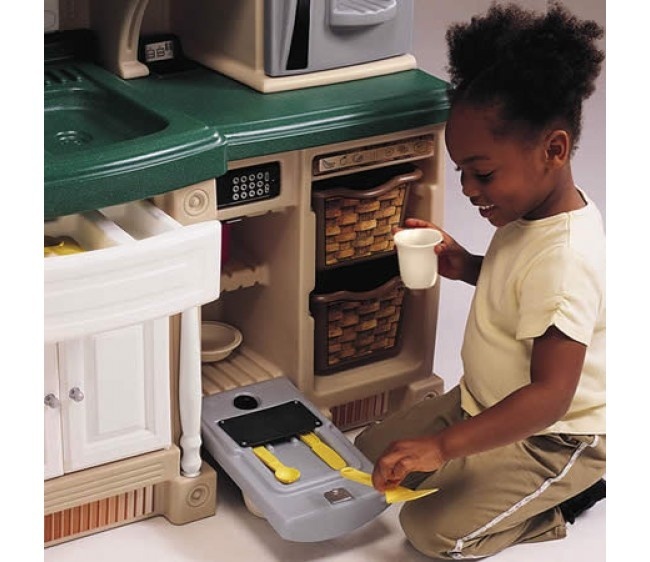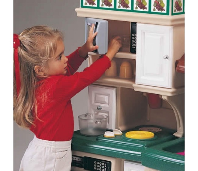 Для малышей, которые с удовольствием помогают маме готовить обед или мыть посуду, приятным сюрпризом будет игровая кухня от компании «Step 2». Кухня представлена единым модулем, который станет украшением игровой комнаты и позволит детям познакомиться с предназначением и принципами работы основной бытовой техники. Все элементы выполнены в современном и реалистичном дизайне, оснащены звуковыми эффектами.