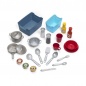 Кухня "Мишлен" - компактная детская кухня со встроенной техникой (плита, духовка, холодильник и кофеварка), мойкой, полками и шкафчиками с открывающимися дверцами. Для придания игре реалистичности, в комплекте поставляются аксессуары, а конфорка на плите снабжена звуковыми и световыми эффектами. Кухня изготовлена из гигиеничного пластика, который легко очищается от загрязнений.