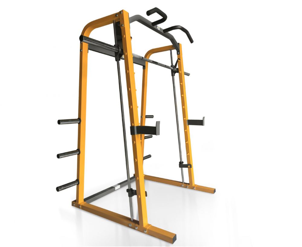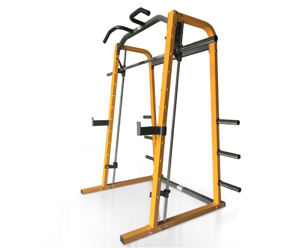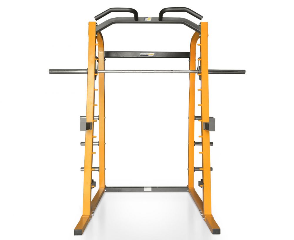 Силовая рама Машина Смита STONERISE D007 для домашнего использования. Максимальная нагрузка на верхний турник до 150 кг, на гриф - до 200 кг, на ограничители амплитуды движения - до 250 кг.