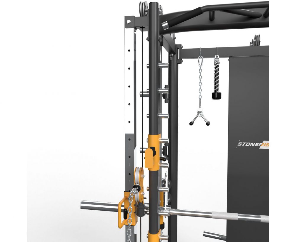 Силовая станция оранжево-серого цвета D910N является самым функциональным тренажёром в линейке STONERISE. Благодаря множеству опций, данный тренажёр рассчитан на комплексное развитие мышц всего тела.