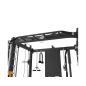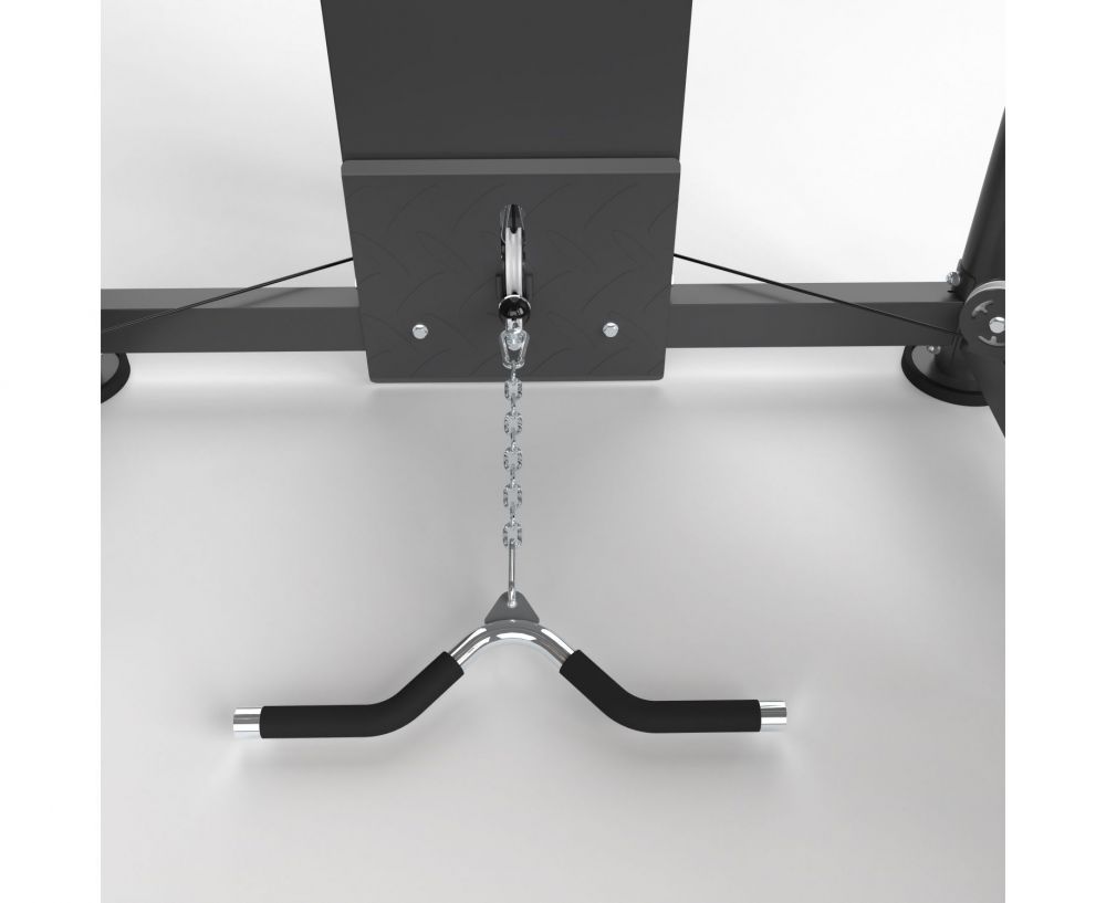 Максимальная нагрузка на верхний турник до 200 кг, на верхние и нижние держатели для грифа до 250 кг, на боковые ручки для тяги до 250 кг, на боковые опорные ручки для отжиманий до 180 кг, на гриф до 300 кг. Нагрузка на держатели для дисков позади конструкции до 200 кг, на держатели для дисков до 100 кг, на конструкцию - до 300 кг. Диаметр дисков для хранения и нагрузки 51 мм, в комплект не входят. Нагрузка на кольцо для боксерской груши 160 кг.