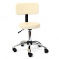 Стул круглый со спинкой на хромированной стальной раме в форме пятилучия, оснащенный колесами и регулировкой высоты, при помощи газ-лифта.