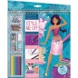 Множество разнообразных трафаретов и шаблонов, а также блесток, стразов и разноцветных карандашей помогут вашей маленькой художнице вытворить что-то оригинальное и достойное мирового подиума! Картонная подложка позволит ребенку играть даже в автобусе или самолете.