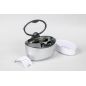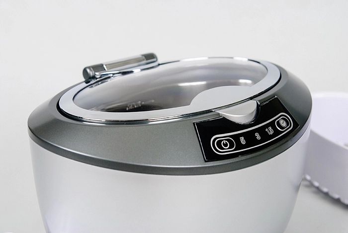 Объём ёмкости из коррозионностойкой стали 750 мл (максимальный уровень жидкости 600 мл). Увеличенное смотровое окошко на крышке позволяет полностью контролировать процесс очистки. Прибор оборудован тремя режимами встроенного таймера автоматического отключения.