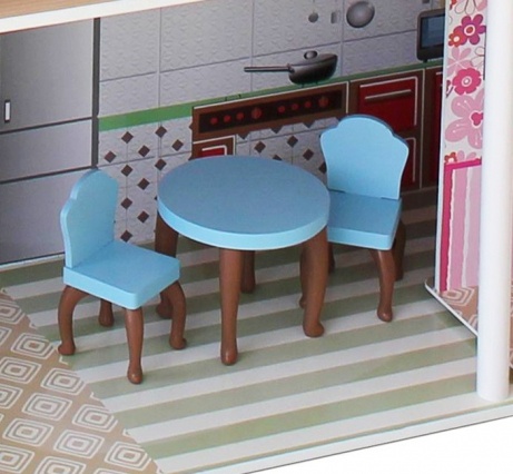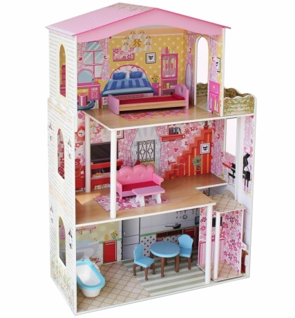 Аманда - это нежный, красивый, большой деревянный домик для кукол до 30 см, полностью укомплектованный игровыми аксессуарами. Домик выполнен в классическом для девичьей игрушки розовом цвете. Домик имеет три этажа, на каждом по комнате, с лестницей и лифтом.