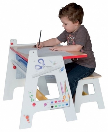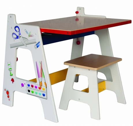 Вашему вниманию предлагается замечательный игровой набор "Дуо 2 в 1", который совмещает в себе несколько функций - в одном положении это полноценный функциональный стол для рисования, укомплектованный стулом. В другом – это доска, на которой можно рисовать мелком.