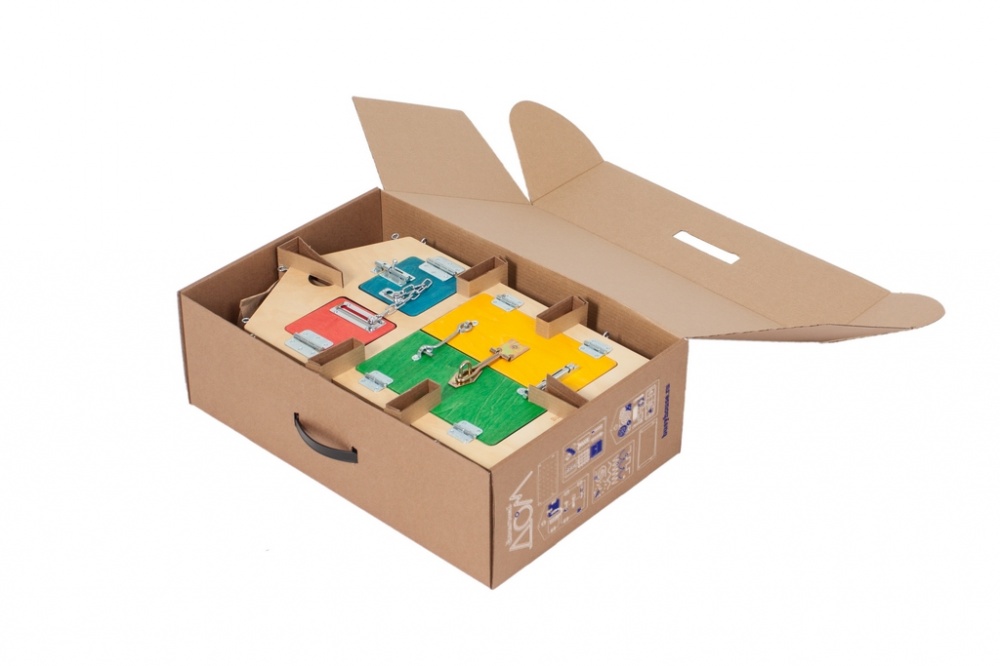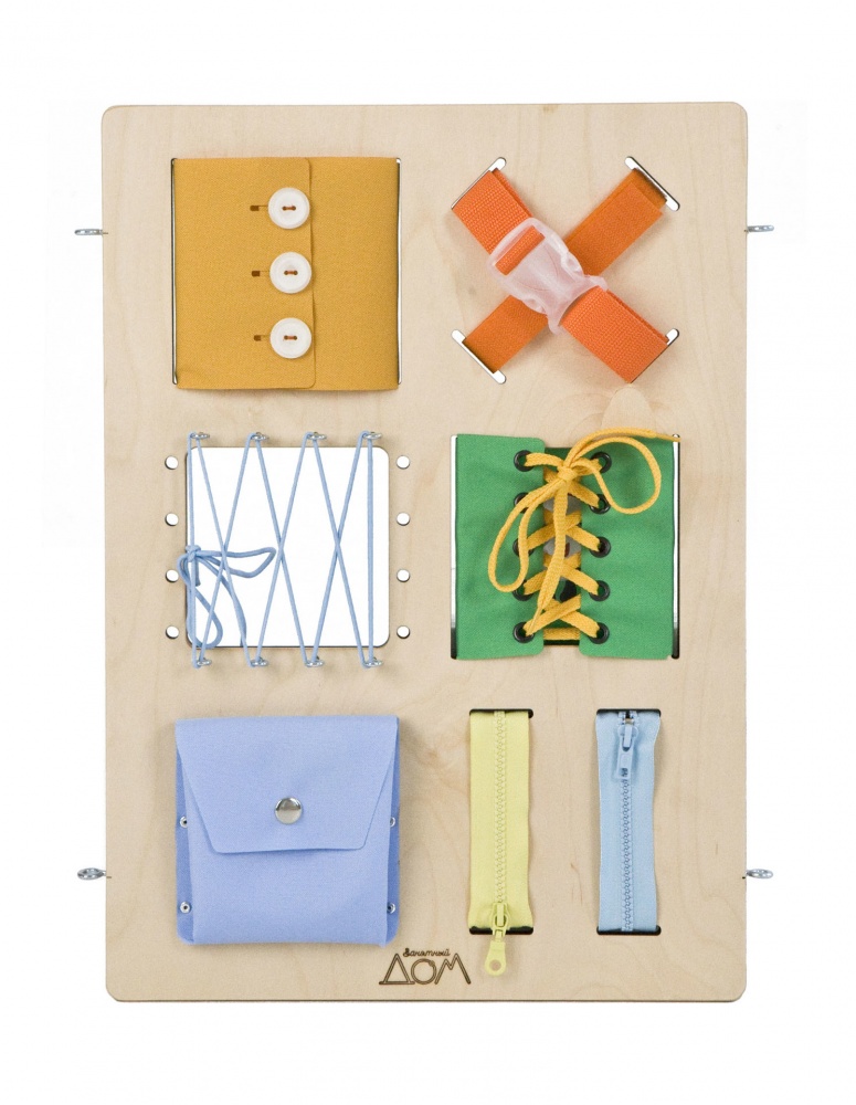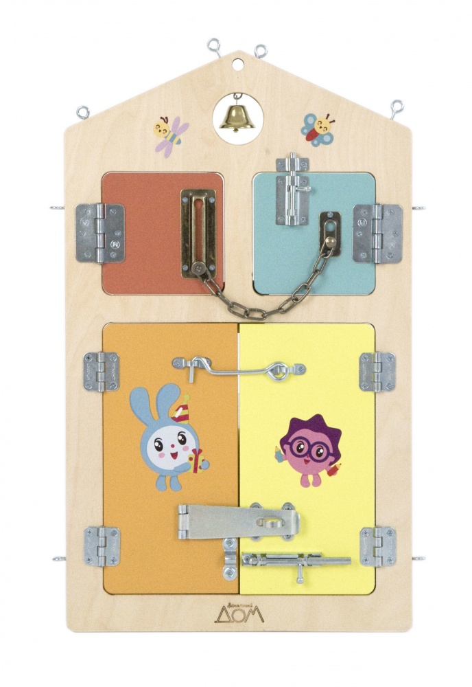 Занятный домик состоит из 6 изибордов, которые соединяются между собой при помощи специальных пазов. Их можно откреплять друг от друга и класть на горизонтальную поверхность для выполнения упражнений и заданий.