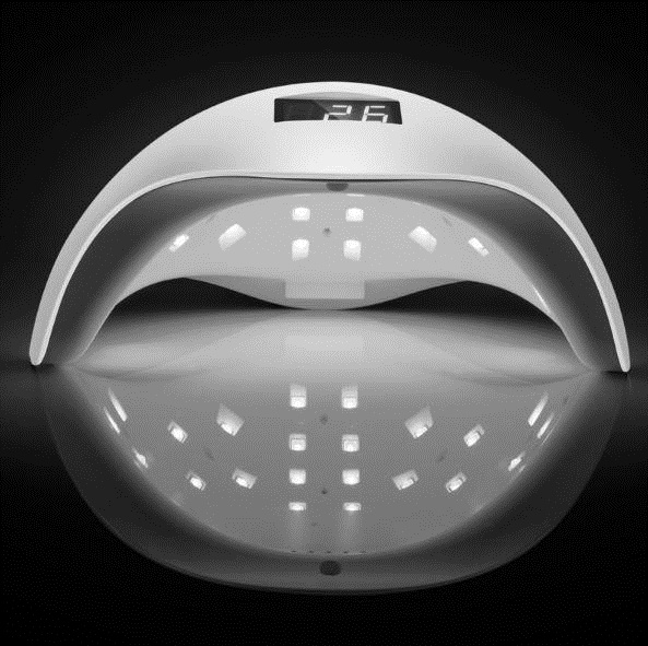 Это гибрид UV и LED лампы нового поколения. Лампа SUN 5 (48W LED+UV) предназначена для полимеризации гель-лаков (шеллак), наращивания ногтей и любых покрытий, в состав которых входит гель (например, биогель). Имеет пластиковый корпус бело-розового цвета, на верхней части которого расположен электронный дисплей на которой выводится отсчёт таймера, включение происходит при помощи сенсора движения (помещаете руку в лампу- включается лампа).