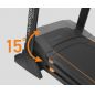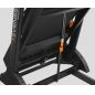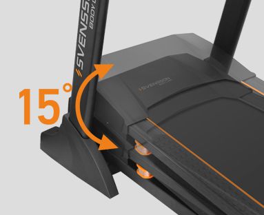 К другим особенностям дорожки относятся двухфазная гидравлическая система складывания, которая существенно облегчает складывание дорожки, а при раскладывании обеспечивает медленное опускание полотна в последней фазе, гарантируя легкость и безопасность. Перемещение дорожки происходит за счет 2-х транспортировочных роликов. Выровнять положение тренажера относительно поверхности можно за счет компенсаторов неровностей пола.