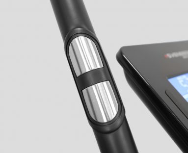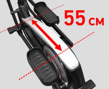 Электромагнитная система нагружения, по сравнению с предыдущими моделями серии, прокачана в 2 раза и выдает 32 уровня регулировки сопротивления. Это позволит сделать тренировку более жесткой и эффективной. Рукоятки выполнены оригинально и отличаются от большинства эллипсов. Их положение немного шире обычного - это позволяет загрузить мышцы рук и плечевого пояса. Рифленые антискользящие педали увеличенного размера обеспечивают надежное сцепление между подошвами тренировочной обуви и педалями.