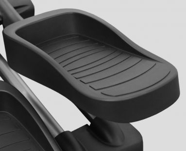 С точки зрения биомеханики тренажер превосходно справляется со своими задачами. Передний привод обеспечивает правильную и естественную траекторию движения. Длина шага достаточна для комфортной эффективной тренировки. Безусловно, важна рама - иначе тренажер просто не выдержит высокоинтенсивных нагрузок. Эллипсоид построен с использованием сварного профиля максимальной прочности. Педальный узел построен на базе переднего привода и использует 4 рельсы для качественного и надежного скольжения педалей.