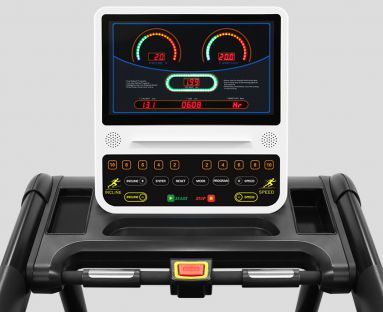 Просторный тренировочный компьютер представлен шестью буквенно-цифровыми LED-дисплеями, которые выводят на экран показатели тренировки. Все показатели изменяются при помощи сенсорных кнопок. На выбор пользователя представлено 5 разнообразных тренировочных режимов. Помимо предустановленных программ, можно воспользоваться самостоятельно регулируемым ручным режимом, а также создать собственный тренировочный профиль в одном из 2-х пользовательских режимов. Для измерения пульса пользователей установлены специальные сенсорные датчики. Приятными опциями являются подставка под гаджеты, место для бутылочки с водой и хранения мобильного телефона.