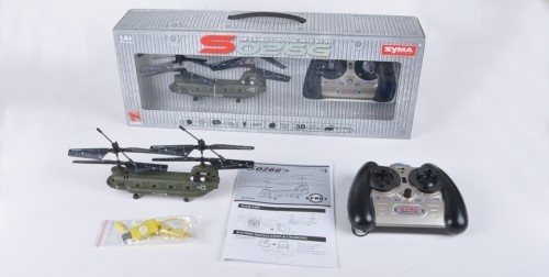 Радиоуправляемый вертолет Syma R/C Helicopter Chinook S026G - радиоуправляемая модель вертолета с гироскопом тандемной схемы, полностью готов к полету. Эта модель обладает большой устойчивостью в полете, даже новичок сможет легко управлять этим вертолетом. Модель можно запускать в просторной квартире. Имеет высокую стабильность полета. Игрушка имеет сертификат соответствия Ростест.