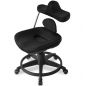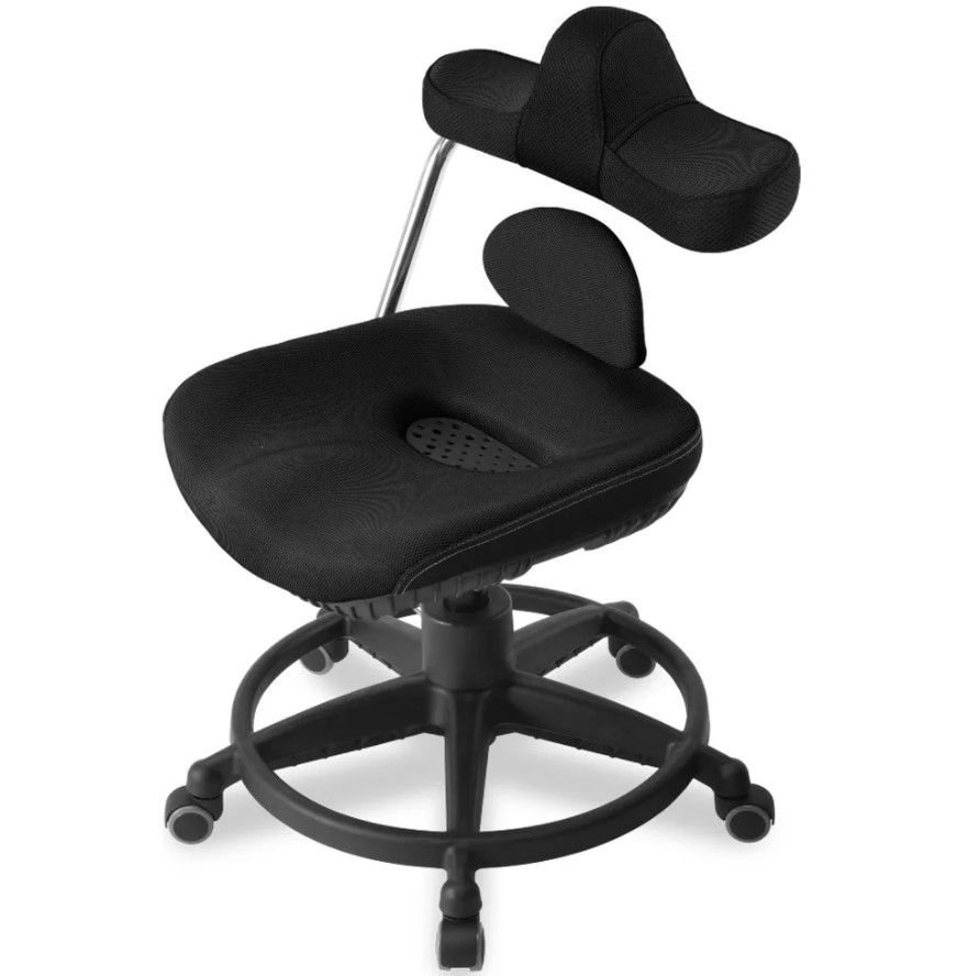 Эргономичное сиденье оснащено прикрепленным поясничным валиком для поддержания правильной осанки. Анатомическое сиденье с выделенными линиями бедра и углублением для вывешивания зоны копчика. Структура сидения имеет дышащую мембрану для активного тепло и воздухообмена.