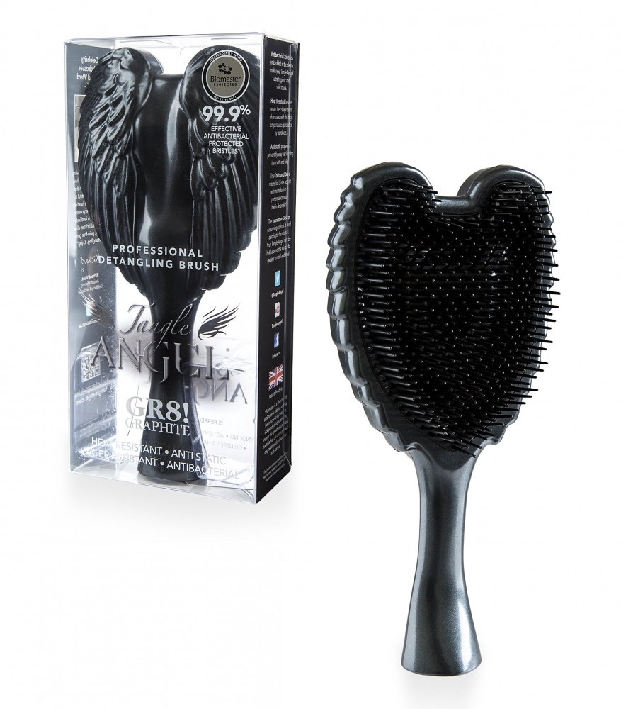 Ухаживать за волосами стало намного проще и комфортнее, когда была разработана расческа Tangle Angel GR8 Graphite! Она привлекает внимание благодаря эффектному дизайну и высокому качеству исполнения. Расческа изготовлена в виде ангела с расправленными крыльями, а её конструкция – прекрасно справляется с волосами разной длины, обеспечивая щадящее профессиональное воздействие. Расческа обладает уникальным антибактериальным покрытием, которое делает ее безопасной в использовании. Она стойкая к воздействию высоких температур и влажности, может использоваться дома или в поездках. Имеется специальное антистатическое покрытие щетинок.