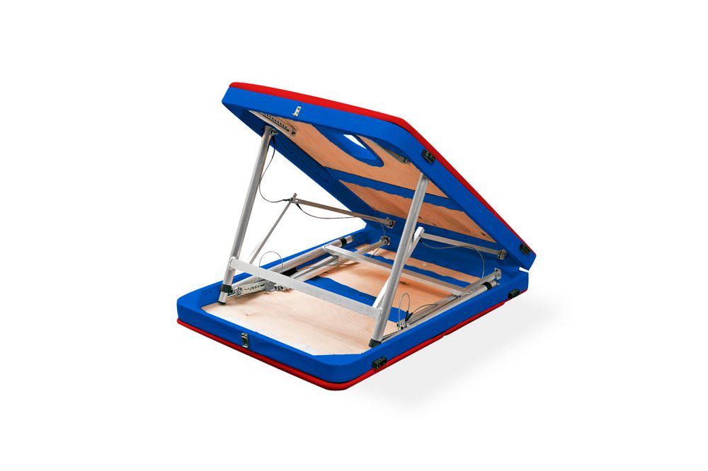 Данная модель складного массажного стола за счет комбинации деревянного каркаса, алюминиевых ножек и системы тросов является очень легкой и достаточно устойчивой. Массажный стол оборудован поднимающейся ножной частью для проведения лимфодренажных процедур.