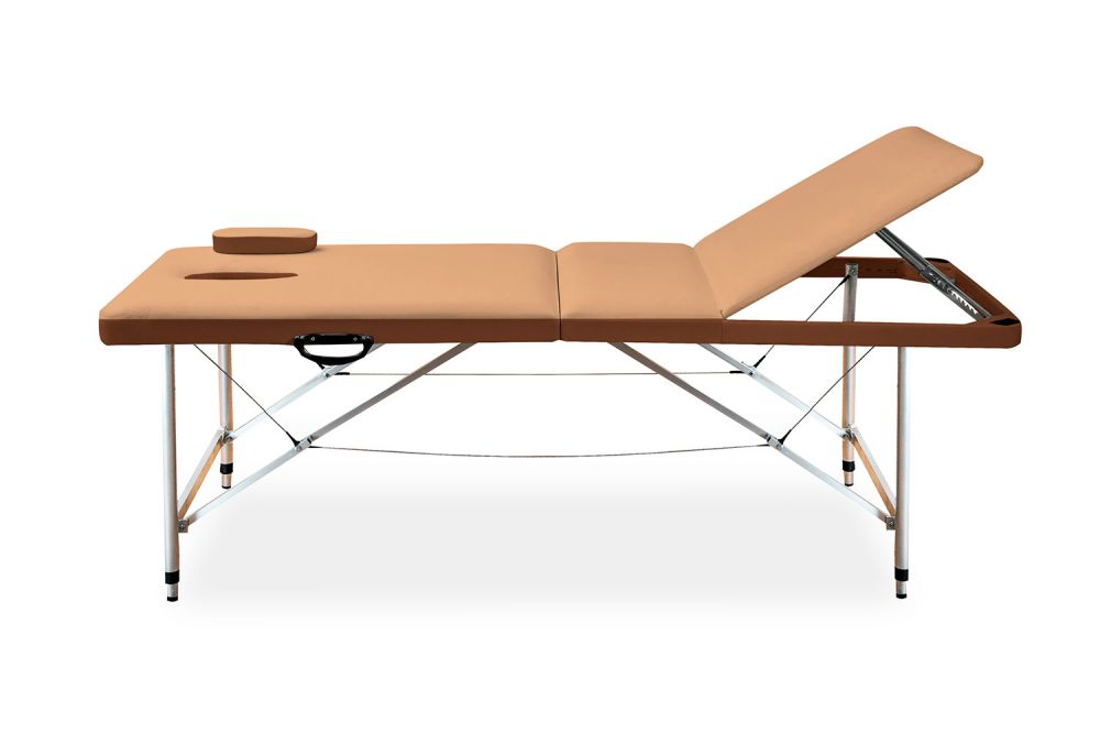 Складной двухсекционный массажный стол "Master 9" с регулируемой спинкой и люверсом для лица прост в эксплуатации и имеет стильный дизайн. Ножки из трубчатого алюминия повышают устойчивость и надежность всей конструкции, а влагостойкая фанера позволяют использовать стол в условиях любой влажности.