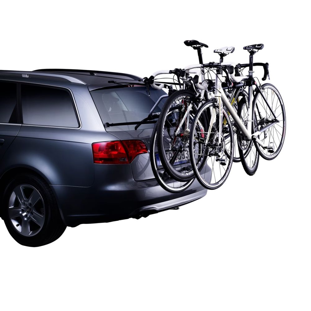 Простое подвесное крепление Thule FreeWay для велосипедов на заднюю дверь, предназначенное для хэтчбеков и седанов (для 3 велосипедов).