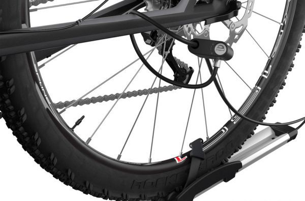 Особенности: - Крюк надежно захватывает переднее колесо, предотвращая контакт с велосипедной рамой. - Подходит для велосипедов с карбоновыми рамами. - Универсальный дизайн позволяет прикреплять велосипеды с нетрадиционными рамными конструкциями, задней подвеской и флягодержателями. - Простое стыковочное устройство для переноса багажника с одной стороны автомобиля на другую. - Ремень с храповым механизмом быстро фиксирует заднее колесо на подставке. - Подходит для большинства велосипедов с колесами от 20 до 29 дюймов и шинами шириной до 3 дюймов (до 5 дюймов с переходником Thule UpRide Fatbike Adapter, продается отдельно). - Максимальный вес велосипеда: до 20 кг. - Фиксируйте велосипед на креплении, а само крепление — на багажнике для крыши (замки входят в комплект).