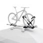 Этот стеллаж для хранения велосипедов для крыши не соприкасается с велосипедной рамой, благодаря чему он идеально подходит для велосипедов с карбоновой рамой. Он надежно защищает велосипед от падения при загрузке — вам даже не придется снимать переднее колесо. Быстро, просто и надежно установите Thule UpRide на любую сторону крыши автомобиля. Во время погрузки все действия осуществляются примерно на уровне крыши автомобиля, благодаря чему вам будет удобно независимо от высоты вашего автомобиля. Для защиты от кражи стеллаж можно закрепить на автомобиле, а сам велосипед — зафиксировать на стеллаже с помощью комплектного троса с замком.
