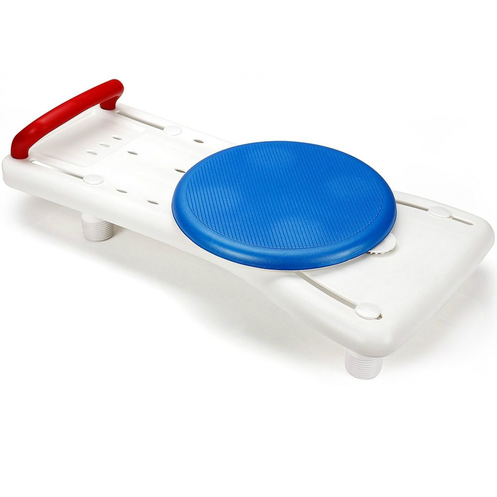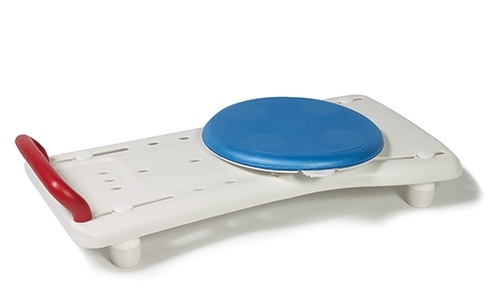 Сидение оснащено поворотной вращающейся платформой, облегчающей движения пользователя. Сидение устанавливается на любую ширину ванны и фиксируется ножками. Перфорация основания облегчает сток воды.