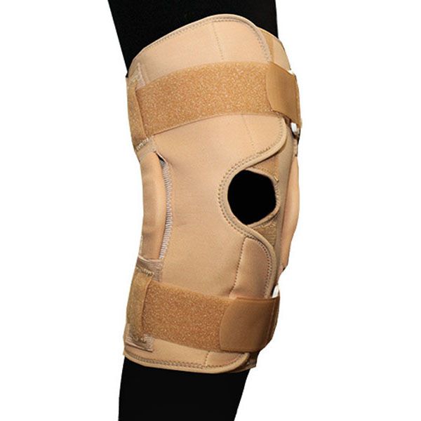 Бандаж (ортез) на коленный сустав (на колено) фиксирующий с ребрами жесткости и отверстием BKFO C1KN-503 изготовлен из неопрена, воздухопроницаемого эластичного материала. Есть 2 ремня на застежке-липучке удерживают бандаж от скольжения,позволяют регулировать степень компрессионных мягких тканей и фиксировать бандаж индивидуально в соответствии с размером ноги.