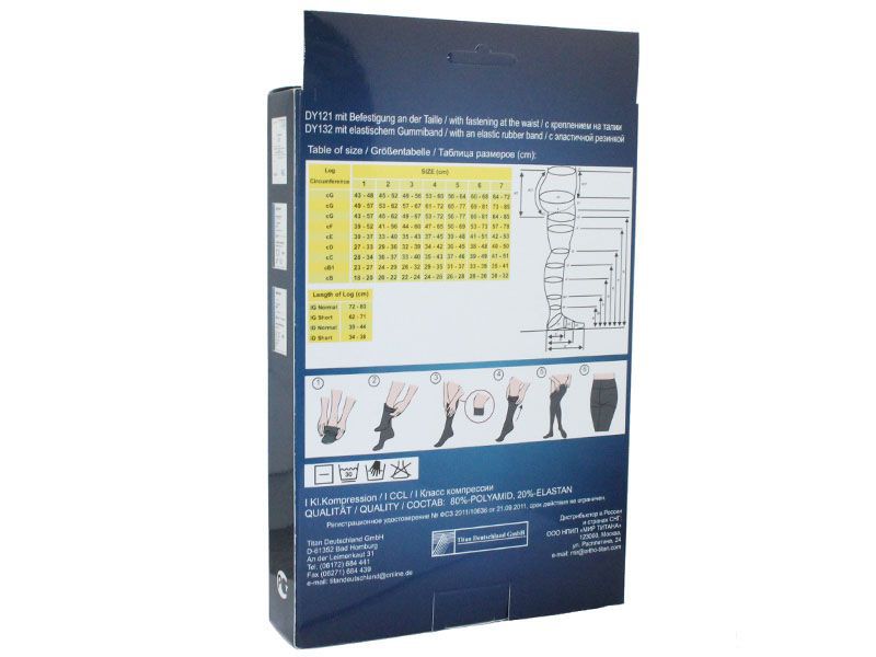 Чулки компрессионные антиэмболические Titan/Мир Титана Dynamik 1 класс DY132 белые