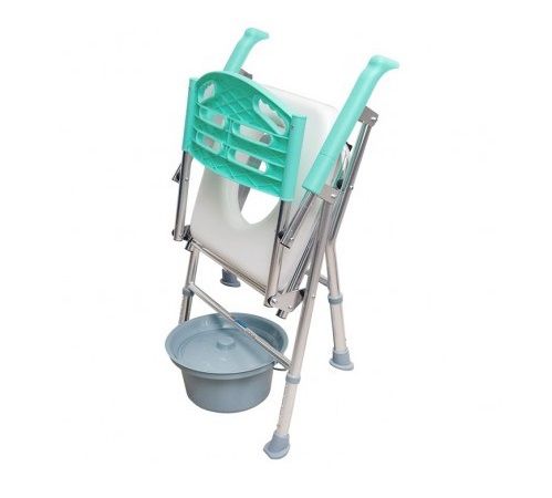 Стул складывается, что позволяет его удобно переносить или хранить, только в этом случае ведро будет занимать дополнительное место. Кресло-туалет предназначен для инвалидов и больных с нарушением функций опорно-двигательного аппарата при их самообслуживании и уходе за ними. Кресло-туалет состоит из алюминиевого каркаса, гигиенического сиденья, спинки и подлокотников, а также фекального приемника.