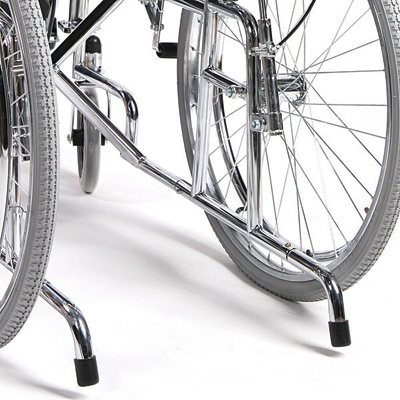 Инвалидное кресло LY-250-008A может использоваться не только для перемещения больных внутри помещения, но и для прогулок по улице. Для хорошей проходимости модель снабжена высокими основными колесами. Каркас металлический, выдерживает нагрузку до 120 кг, поэтому больным с избыточным весом лучше выбрать более прочный вариант.