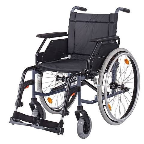 Подлокотники оборудованы нескользящими накладками и боковыми вставками. Высота съемных подножек регулируется перестановкой механических фиксаторов. Подножки имеют текстильные опоры для стоп. На задних колесах размещены светоотражающие элементы. Литые шины передних колес не требуют обслуживания. Максимальная нагрузка 130 кг.