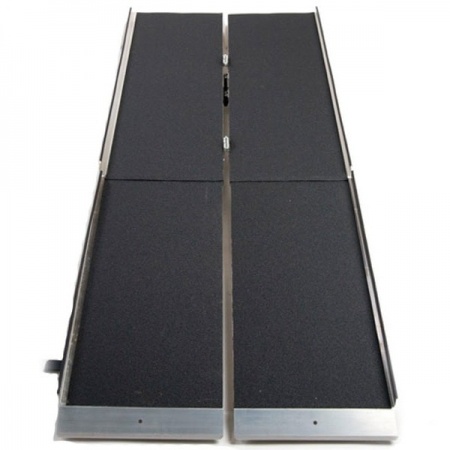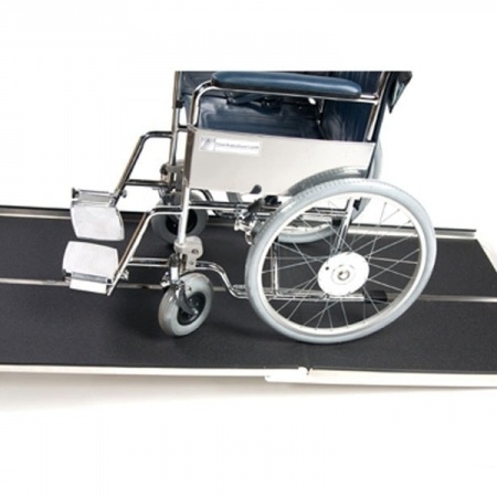 Пандус состоит из четырех секций, имеющих шероховатую поверхность, препятствующую случайному скольжению коляски. Алюминиевый каркас устройства обладает прочностью, но легким весом, что является преимуществом модели и делает ее мобильной.
